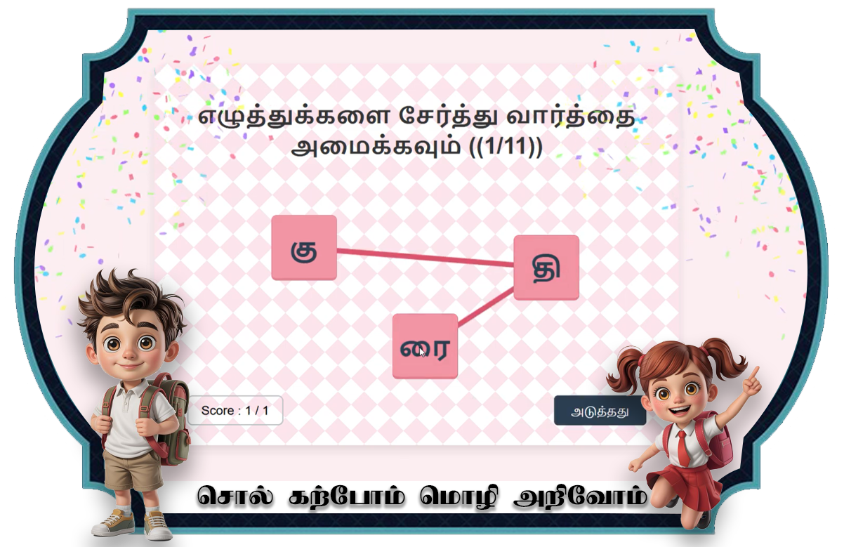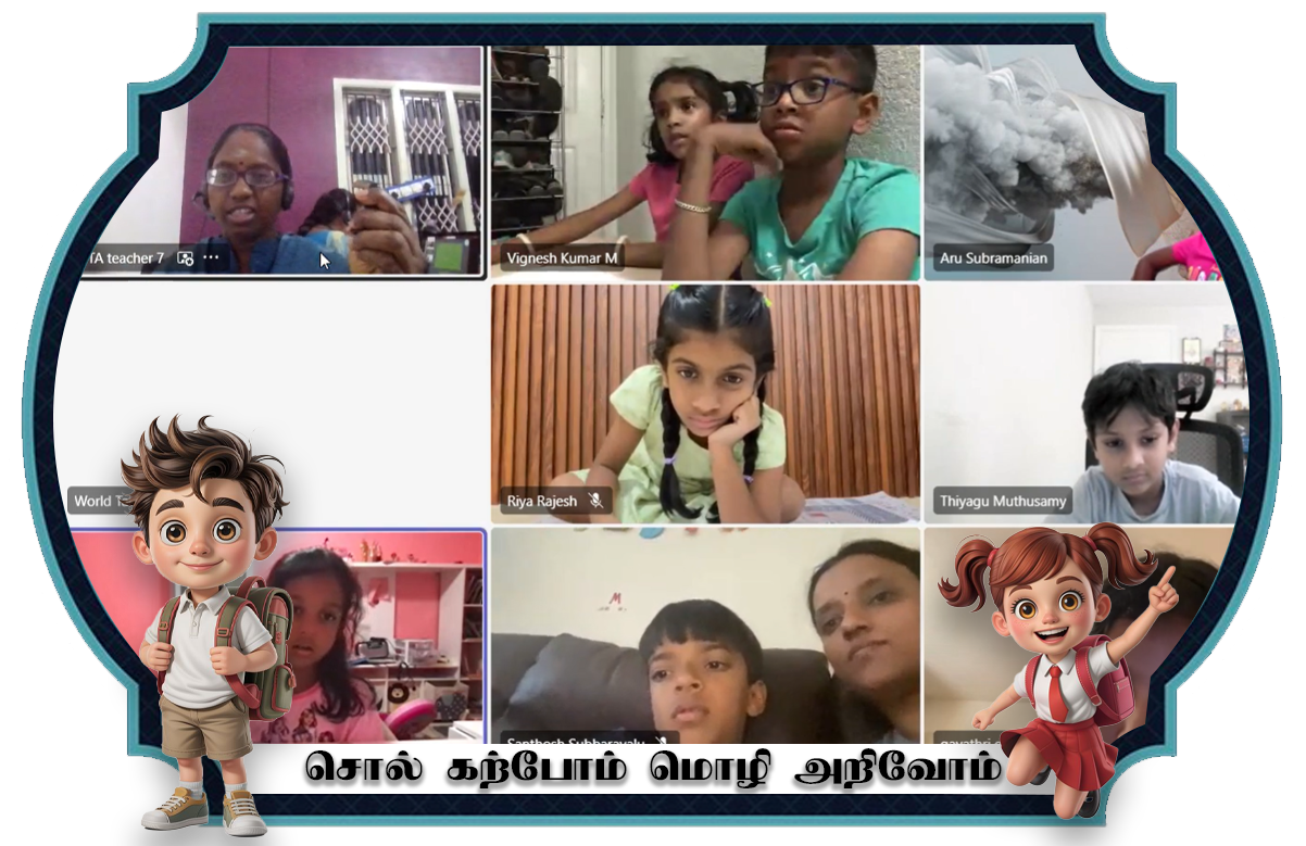 "சொல் கற்போம் மொழி அறிவோம்" என்ற தலைப்பில், அக்டோபர் 08, 2025 அன்று காலை 05:00 மணி முதல் 05:30 மணி வரை (இந்திய நேரம்) ஒரு சிறப்பு வகுப்பு நடைபெற்றது. ஆசிரியர் பிரியதர்ஷினி அவர்கள், வார்த்தைகளை அறிந்து கொள்ளும் திறனை மேம்படுத்தும் வகையில் இந்த வகுப்பை நடத்தினார். புதிய சொற்களை எளிதில் நினைவில் வைப்பதற்கான நுட்பங்களையும், அவற்றை வாக்கியங்களில் பயன்படுத்தும் முறைகளையும் அவர் விளக்கினார். மாணவர்கள் புதிய சொற்களைக் கற்றுக்கொள்வதிலும், அவற்றைச் சரியாக உச்சரிப்பதிலும் மிகுந்த ஆர்வம் காட்டினர். இந்தச் சிறப்பு வகுப்பு, மாணவர்கள் தங்கள் அன்றாட வாழ்வில் நம்பிக்கையுடன் தமிழ் பேசவும் எழுதவும் பெரிதும் உதவியது.