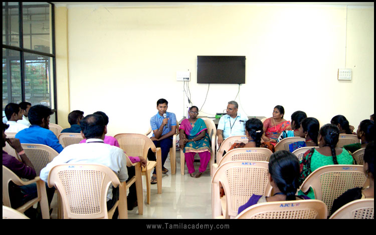 எங்கள் மாணவன் ருத்திஸ் கிருஷ்ணா அய்யநாடார் ஜானகி அம்மாள் கல்லூரியின் முதுகலைத் தமிழ்த்துறை சார்பில் நடைபெற்ற முத்தமிழ் மன்றத்தில் கலந்து கொண்டார். தமிழ் மொழி பயின்ற அனுபவங்களை மாணவர்கள் மற்றும் ஆசிரியரிடம் பகிர்ந்து கொண்டார். மேலும் தனக்குப் பிடித்த கதை, பழமொழி, திருக்குறள் போன்றவை குறித்த மாணவர்களின் கேள்விக்கு விளக்கமளித்தார்..